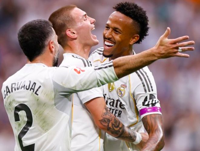 第43分鐘,皇馬卷土重來,維尼修斯下底傳中,米利唐頭球回做,貝林厄姆輕松補(bǔ)射,皇馬再次取得領(lǐng)先。