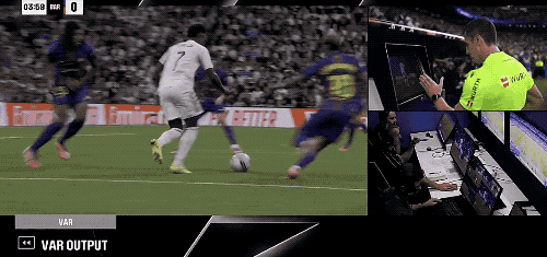 如此關(guān)鍵的比賽,VAR迅速介入,慢動(dòng)作可以看到,亞馬爾先接觸到了球,維尼修斯踢在了亞馬爾的腳上倒地,點(diǎn)球被取消。