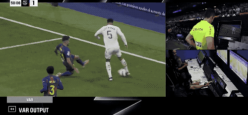 第50分鐘,VAR再度介入,裁判回看后認(rèn)定加西亞手球犯規(guī),改判點(diǎn)球。