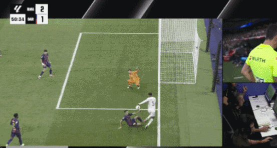 第12分鐘,VAR介入之后再度做出了改判:姆巴佩外圍直接一腳外腳背爆射入網(wǎng),皇馬全隊瘋狂慶祝,隨后主裁判聽從視頻裁判的意見之后,示意姆巴佩越位在先,進球無效,巴薩再度逃過一劫。
