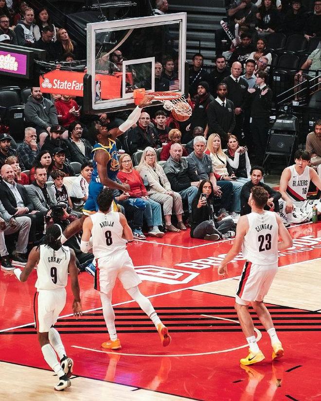 庫(kù)明加本場(chǎng)比賽被安排首發(fā)登場(chǎng)比賽,他在第二節(jié)比賽進(jìn)行到后半段還剩0.9秒時(shí)刻,庫(kù)明加突破上籃被干擾未能命中,反而是開(kāi)拓者成功打反擊得分。