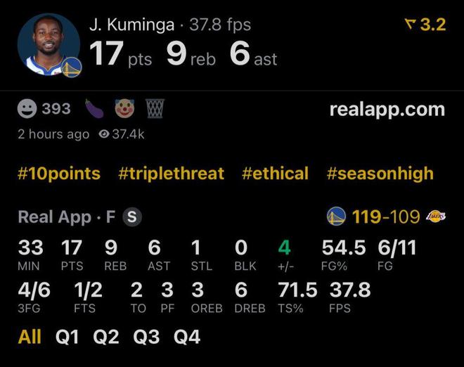 上個賽季的庫明加總會停球,持球進攻也很毛躁,這或許與他想要追求頂薪有關(guān);可如今,揭幕戰(zhàn)打得像掘金隊的戈登一般,攻防兩端發(fā)揮得格外冷靜。希爾德的贊美,真不是硬捧尬吹,庫明加確實進步了;那些助攻以及投進的三分球,加上前場籃板球,正是球隊想要他表現(xiàn)的樣子。勇士隊失去魯尼、維金斯后,前場籃板球能力下降,庫明加正好可以補上來。